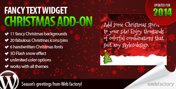 11 new fancy Christmas backgrounds; snow crystals snow crystals, darker snow, not transparent snowflakes trees twinkling sky fancy stars big tree frozen window frost squares 20 new fabulous Christmas icons/pins; snowman snowman #2 sock sock sticker tree animated tree tree sticker green ribbon red gift green bauble orange bauble blue bauble sticker reindeer reindeer sticker snow globe gingerbread cookie Santa’s little helper Santa sticker mistletoe sticker gold bell sticker 6 new handwritten Christmas fonts; Mountains of Christmas Shadows Into Light Emily’s Candy Irish Grover Griffy Courgette 3D Flash snow in 4 variations; no snow very light snow some calm and distant snow normal snow blizzard snow accumulation in footer, 4 variations unlimited color options for background and font full HTML support works with all themes Live demo! Changelog v1